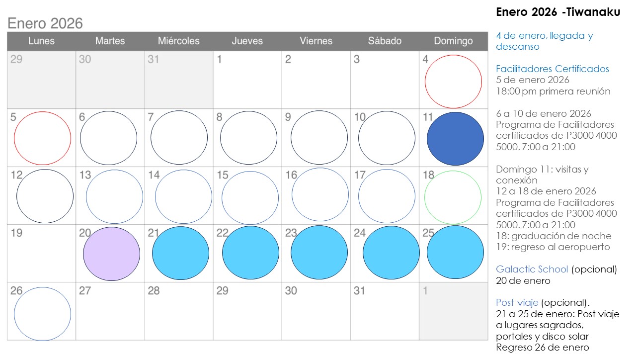 Se trata de una formación especial e intensa, que le prepara en 144 horas para ser Facilitadores Certificados de Pedagooogia 3000 4000 5000 (P3000). Será atendida por Noemi Paymal, antropóloga francesa, fundadora de Pedagooogia 3000 4000 5000 y Carolina Adjemian, Facilitadora de Facilitadores.