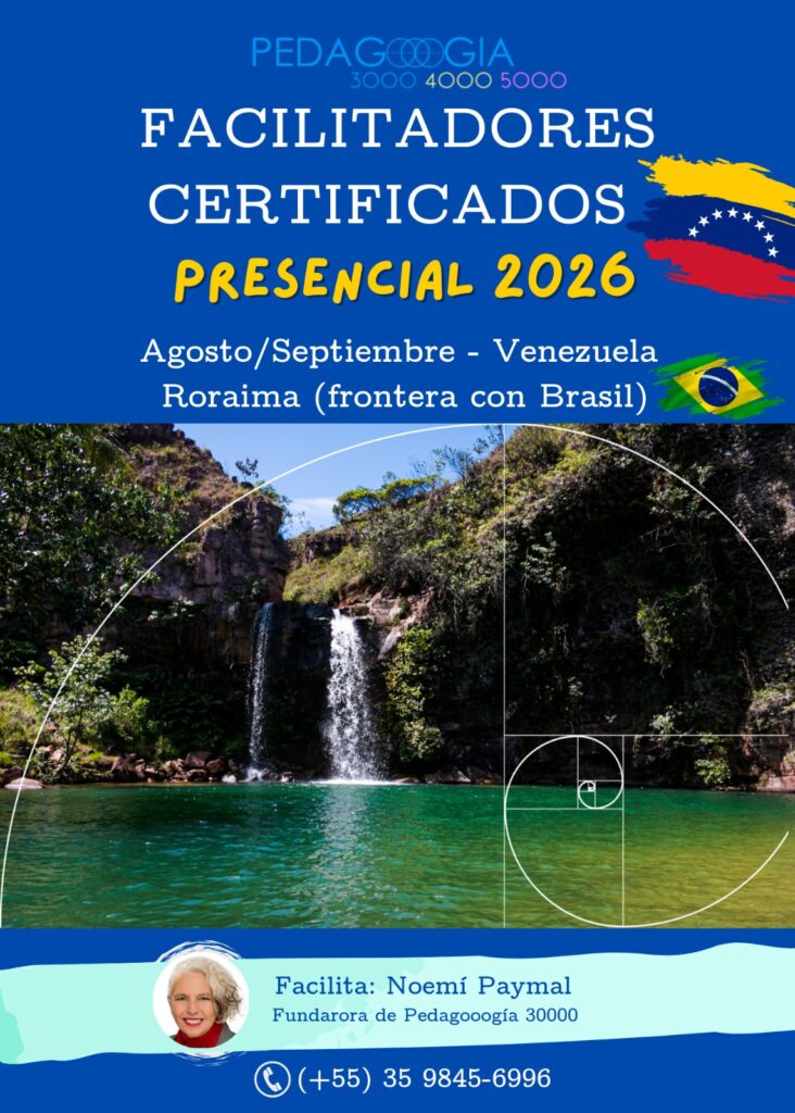 Se trata de una formación especial e intensa, que le prepara en 144 horas para ser Facilitadores Certificados de Pedagooogia 3000 4000 5000 (P3000). Será atendida por Noemi Paymal, antropóloga francesa, fundadora de Pedagooogia 3000 4000 5000 y Carolina Adjemian, Facilitadora de Facilitadores.